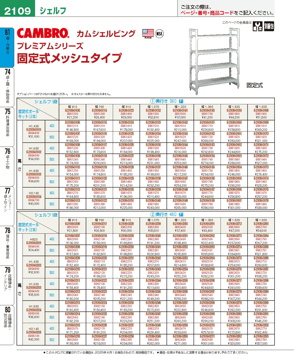 【ポイント20倍】カムシェルフ固定 460×760×H1630 4段メッシュ CPU183064V4(480) EBM vol.25[2109-2]棚・作業台