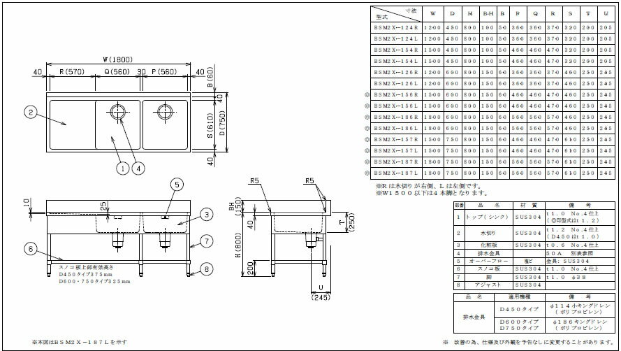 ※メーカー直送商品の為、代金引換には対応しておりません。 二槽水切付シンク・バックガードあり ※画像は同シリーズ商品です。 こちらの商品は水切りが左側となります。 サイズ・仕様・納期をご確認の上ご注文ください。 【外形寸法】間口1200mm×奥行600mm×高さ800mm バック高さ150mm×バック厚さ60mm 【排水口】50A×2 こちらの商品はSUS304(受注生産品)となります。 ■■■■配送についての注意■■■■■ ・運送業者の運転手さんは原則1人の為、中型、大型商品の荷下ろしが出来ませんので、 配達当日は荷下ろしできるように、 人手をご用意下さい。 ・3~4人で持ち運ぶ事が困難な重量物の商品は支店止めとなります。 支店止めの場合はご足労ですが、お近くの営業所までお引き取りに行って頂く形になります。