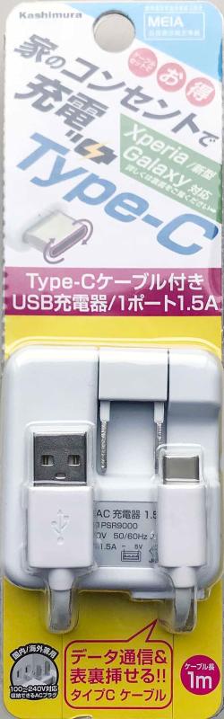カシムラ AC充電器 1.5A Type-C 1m ホワイト 難燃性材料 100V〜240V対応 NAJ-550