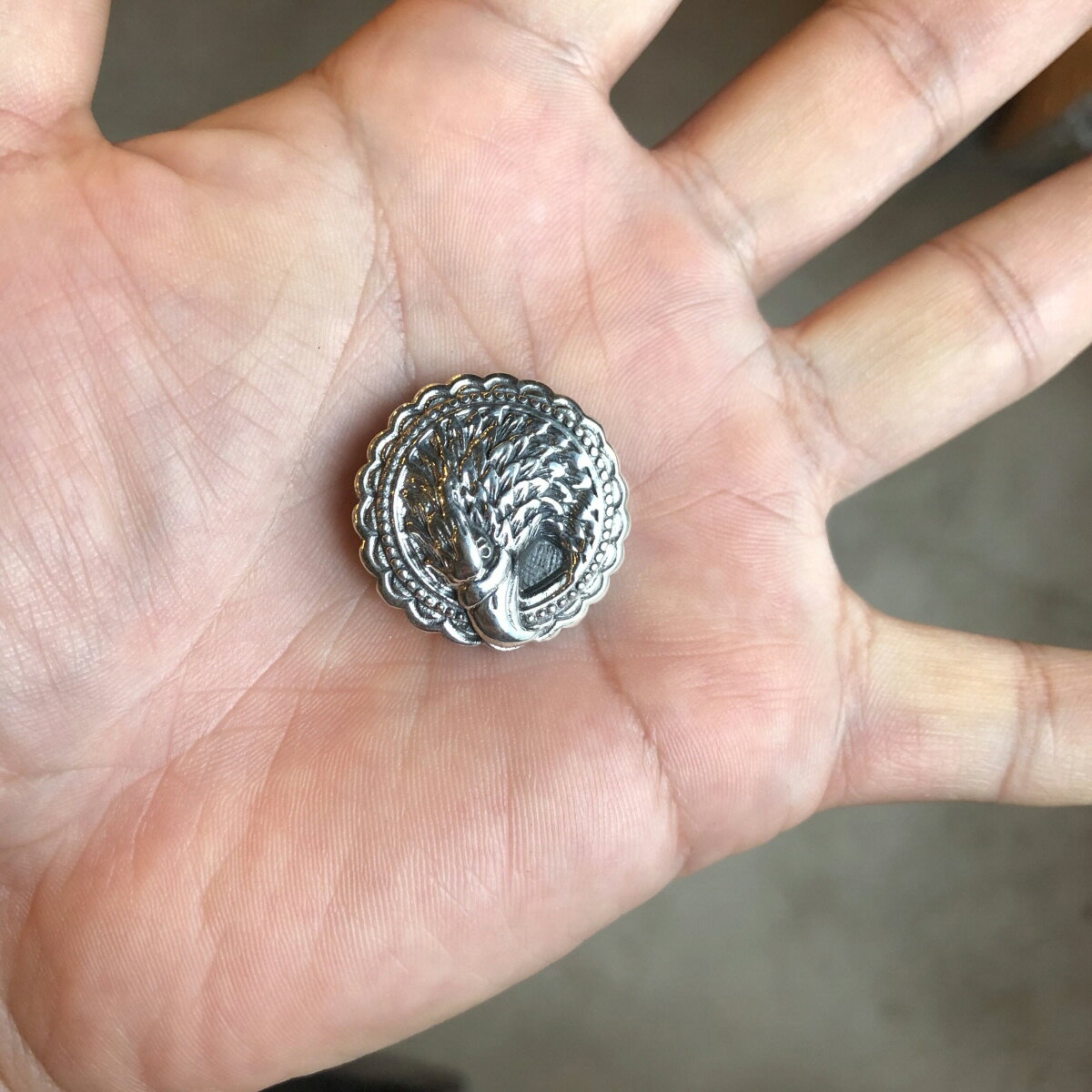 シルバー925 コンチョ イーグル 銀 Silver 925 直径 約25.5mm レザークラフト 財布 ケース カスタムパーツ バッグ DIY パーツ 手芸 革財布 SILVER925 ネイティブ カスタムコンチョ 材質:シルバー925製 刻印有直径:約25.5mm重量:約9.3g付属品:コンチョ1個、ネジ1個4枚目の画像が装着画像になります。カスタムパーツとしていかがでしょうか?クオリティ高いシルバー925製の高品質コンチョになります。ネジ式ですので、すぐに交換できますし、見た目もかなり良くなります。燻し加工も施されており、銀と黒のコントラストがレザーを引き出してくれます。シルバー925はスターリングシルバーとも呼ばれ、スターリングには価値のある、本物という意味があります。銀含有率が92.5%あるため925と呼ばれています。銀は柔らかいため100%ではアクセサリーには不向きとされ、シルバーの強度を高めるため銅などを7.5%混ぜ、合金としてアクセサリーに向く強度にしています。ハンドメイド作品にいかがでしょうか?ヘアゴム、ブレスレット、バッグ、チャームズパゲッティ、ポーチ、お財布、キーホルダーなど…※ネジ・ネジ穴はシルバーではございません。注意事項※当商品はすべてシルバー925を使用しております。 2