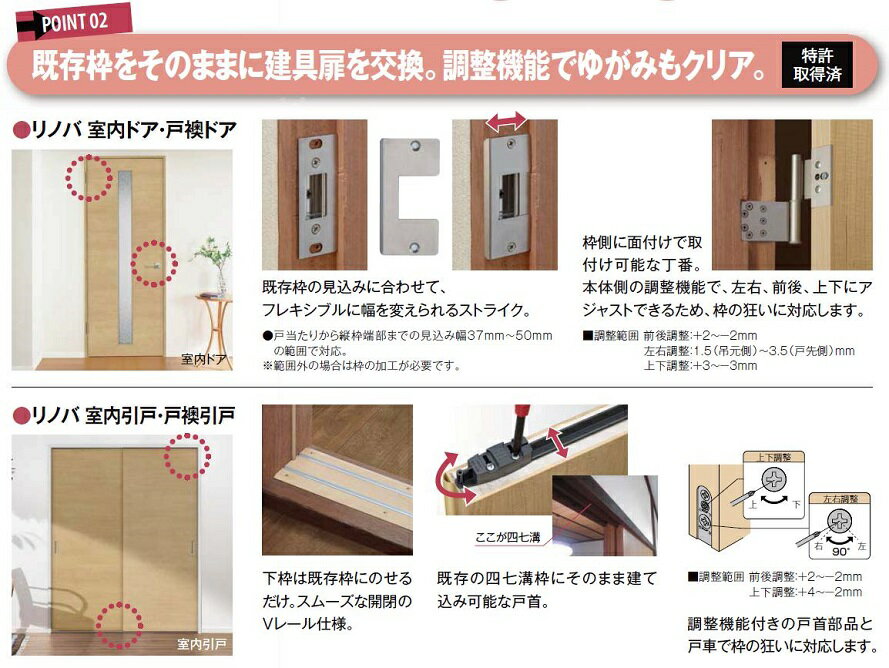 リノバ室内引戸 戸襖引戸 引違い戸2枚建 デザイン:FAB 特注サイズ Dw:591~990mm × Dh:1,672~2,030mm 内装リフォーム専用 カバー工法 LIXIL TOSTEM