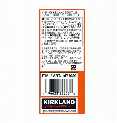 【セット商品】Kirklandカークランドシグネチャー 無塩 ミックス・ナッツ 1.13kg オレンジ 2個セット cos1671929x2 コストコ COSTCO