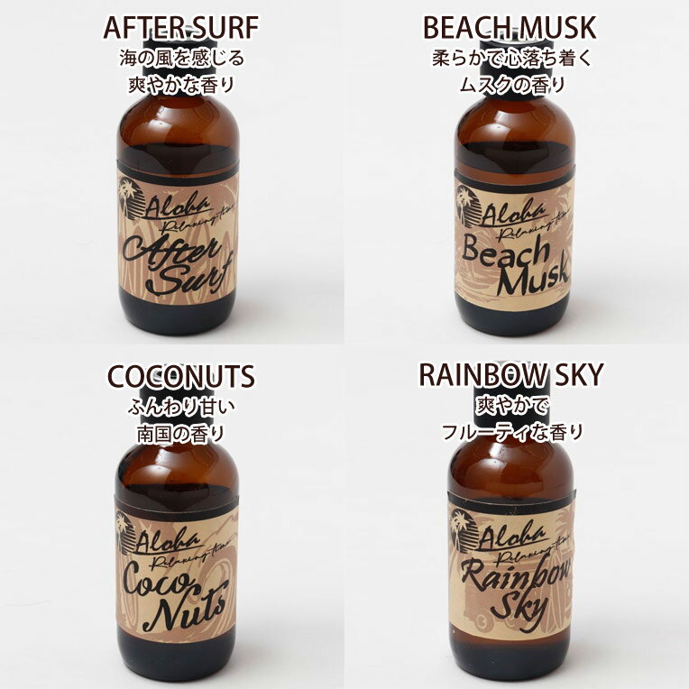 HAWAIIのサーフスタイルをイメージしたディフューザー。 メンズライクなデザインは男性でも使いやすいデザインです。 お部屋に置くだけで、HAWAIIの香りを運んでくれます。 リラックスしたい時や就寝前のベットルームなど 手軽に香りを楽しめるディフューザータイプのアロマです。 火を使わないので消し忘れの心配や 小さいお子様のいらっしゃる方にも安心してお部屋の香りを楽しんで頂けます。 <AFTER SURF> 海の風を感じる爽やかな香り <BEACH MUSK> 柔らかで心落ち着くムスクの香り <COCONUTS> ふんわり甘い南国の香り <RAINBOW SKY> 爽やかでフルーティな香り サイズ 縦 21cm 底径 4.5cm 内容量 200ml ご使用可能時間 約1.5〜2ヶ月 ※香りの持続時間は気温や置き場所の状態によって異なります。 原材料 香料、溶剤、アルコール、水 ボトル:ガラス スティック:マイクロファイバー キャップ:ウッド 注意 色・素材感につきましては、お客様がお使いのモニターにより見え方が異なります。ご了承くださいませ。 ●火気厳禁!!絶対に火に近づけないでください。また、火気のある可能性のあるところでのご使用はお止めください。 ●本品は飲食物ではありません。誤飲等にご注意ください。 ●万一飲みこんだ場合にはすぐに医師に相談し指示を仰いだ上で本品を持参し診察を受けてください。 ●肌に直接塗る等、芳香以外の目的では絶対に使用しないでください。 ●皮膚の弱い方が中身に直接触れた場合、かぶれる恐れがあります。石鹸などでよく洗い流してください。 ●目に入った場合は直ちに洗い流してください。異常が現れた場合は、すぐに医師の診察を受けてください。 ●衣料・家具・樹脂等、変色・変質の恐れがあるものには中身が直接触れないようにしてください。 ●高温・直射日光・火気を避け、お子様やペットの手が届かないところで使用、保管してください。 [関連キーワード] ハワイ インテリア アロマディフューザー アロマ グラス リラックス 長時間 メンズ レディース 男女兼用 芳香剤 香り いい香り いい匂い プルメリア ココナッツ ムスク 癒し 室内 小型 おしゃれ aroma 送料無料 おしゃれ シンプル ナチュラル 小洒落 洒落 こだわり おすすめ オススメ 人気 売れ筋 ランキング トレンド 流行 SNS インスタ インスタ映え Instagram オールシーズン 模様替え 定番商品 送料込み 恋人 家族 女性 男性 母 義母 父 義父 お父さん お母さん 祖母祖父 おじいちゃん おばあちゃん 子供 息子 娘 兄 姉 妹 弟 彼女 彼 友達 上司 先輩 部下 後輩 10代 20代 30代 40代 50代 60代 70代 80代 90代誕生日プレゼント 贈物 お礼 プレゼント 返礼品 お正月 成人式 成人の日 ホワイトデー ひな祭り 七夕 お中元 夏ギフト サマーギフト イベント 個展 展覧会 展示会 演出 撮影 入学式 入園式 卒業式 文化祭 学校行事 定年 送迎会 歓迎会 歓送迎会 お祝い 出産祝い 誕生日祝い 入学祝い 就職祝い 開店祝い 改築祝い 新築祝い 引越し祝い 結婚祝い 退職祝い 卒業祝い 還祝い 古希 喜寿 米寿 記念日 母の日 母の日ギフト 父の日ギフト 敬老の日 いい夫婦の日 結婚記念日 誕生日 カフェ リビング 寝室 和室 洋室 フロント ホテル 客間 レストラン 自宅 廊下 玄関 新生活 ギフト 一人暮らし 引っ越し 引越し