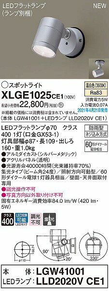 パナソニック 屋外用スポットライト シルバー 集光 LED(温白色) XLGE1025CE1