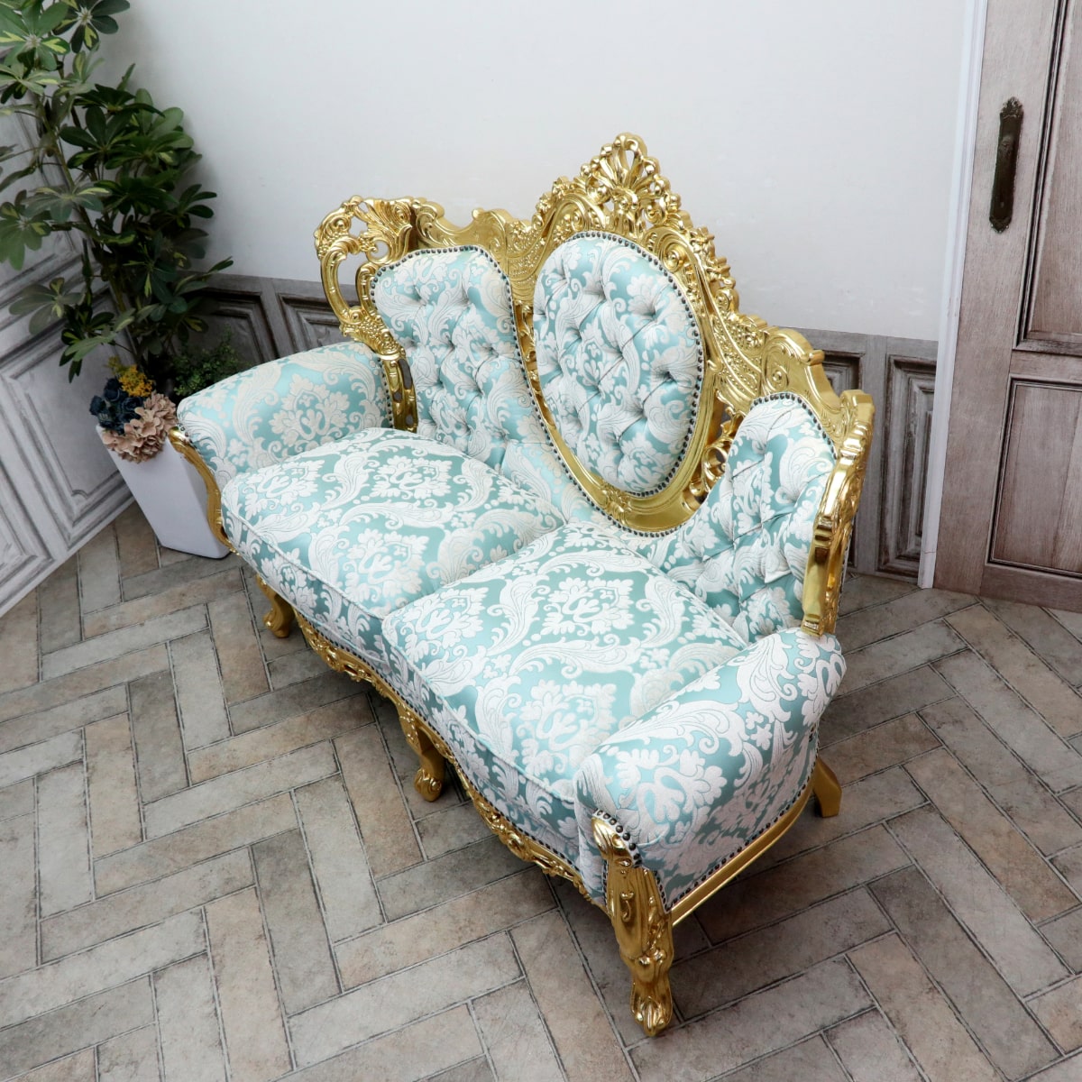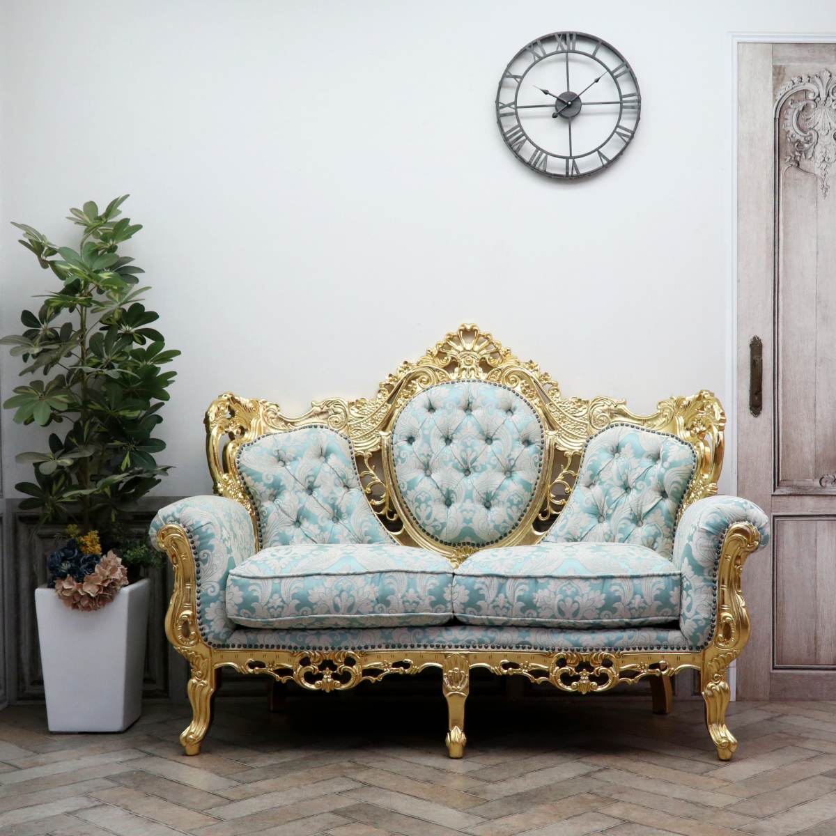 輸入家具 二人掛けソファ ヴェネチアン ロココ ソファー アンティーク ロココ調家具 姫系 ソファー 2人掛け ダブルソファ フレンチ イタリア エレガント 本物の高級感 ヴィンテージ レトロ おしゃれ デザイナーズ フラワー 花柄 ブルー 青 ゴールド 1011-2-10F66B