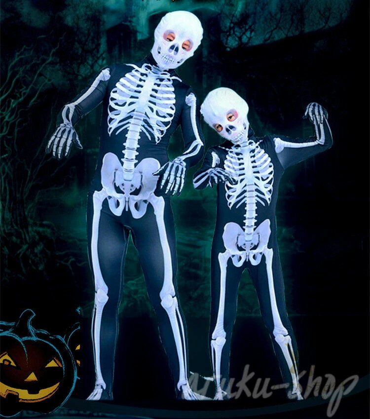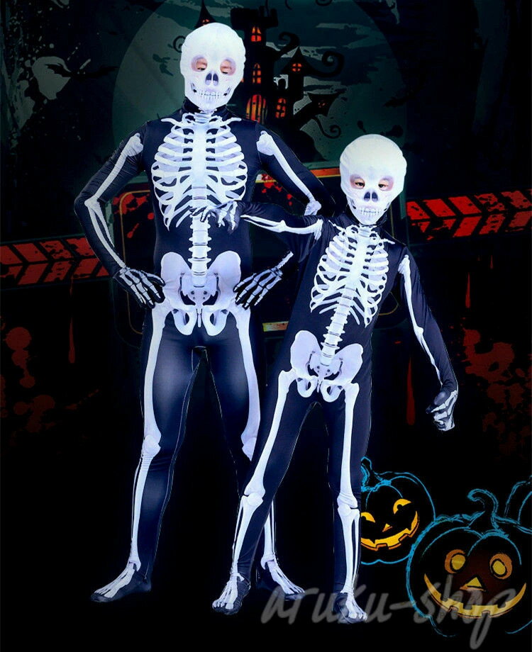 ハロウィンス 親子ペアルック ジャンプスーツ スケルトン 男女共用 コスプレコスチュームドレス ゾンビコスチュー スケルトン 風 おもしろ 3D 骸骨 コスプレ 仮装 プレゼント
