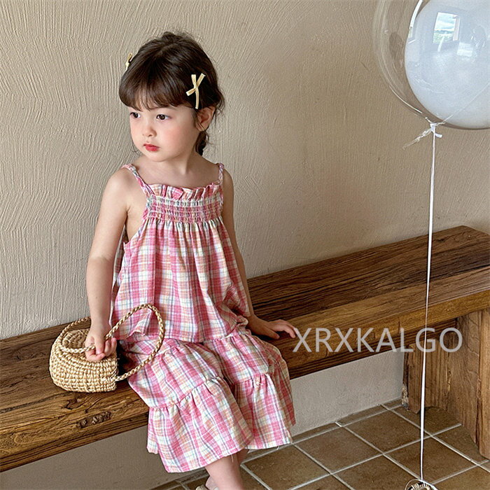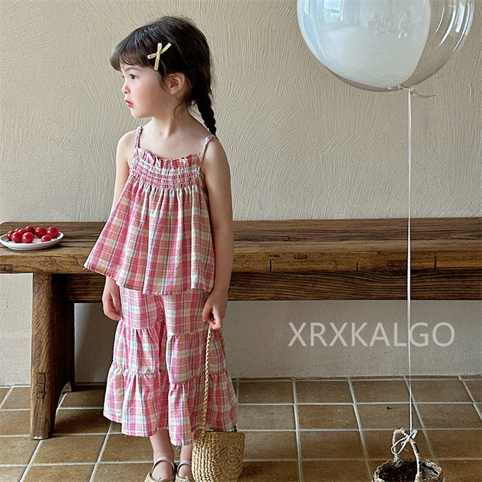 セットアップ キッズ ベビー 子供 子ども こども 子供服 キッズ服 女の子 ガールズ フリル付き チェック柄 通気 夏 夏物 夏服 春夏 春夏物 ノースリーブ フリル フレアパンツ 保育園 お出かけ セット 上下セット 発表会入園式 キッズ用80-130