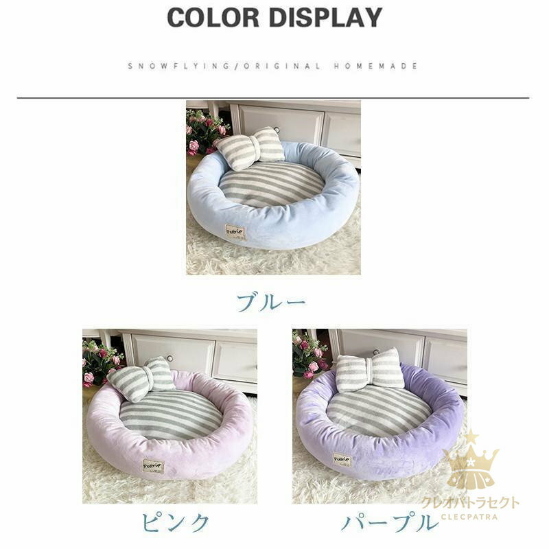 犬ベッド 犬用品 ペット用ベッド ペット 犬 猫 ベッド 春 夏 秋 冬 猫ベッド 寝具 ふわふわ 柔らかい 可愛い ワンちゃん リボン 枕付き