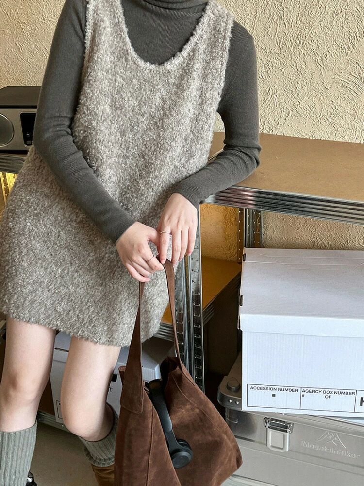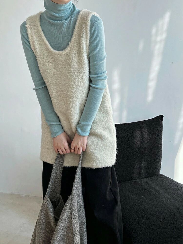 Uネック ロング丈 ニットベスト 重ね着 ニットキャミソール ニットキャミ チュニック ジレ ワンピース ノースリーブ レディース 大人カジュアル 大人可愛い 大人フェミニン 無地 ニット 秋 冬 春