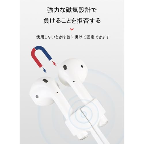 【送料無料】[FamGift] AirPods Pro 第1/2世代 イヤホン ストラップ マグネット シリコン エアポッズ ネックストラップ 落下防止 紛失防止 収納便利 スポーツ(ホワイト)