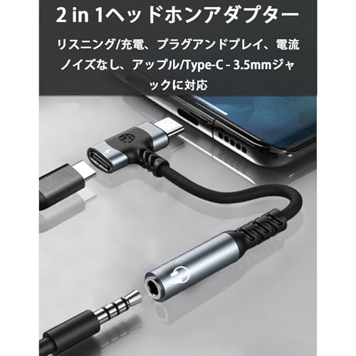 【送料無料】Type-C to Aux 3.5mm 変換 ケーブル 2in1 オーディオアダプタ HiFi音質 タイプC イヤホン変換 アダプタ 二股 2ポート 充電同時 DAC搭載 充電しながら ナイロン編み i-Phone15/Galaxy/OPPO/i-Pad/AndroidなどCタイプ搭載の機器適用