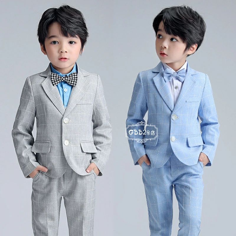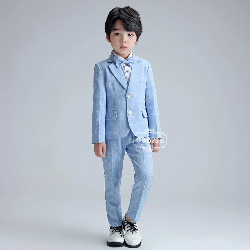 【半額!スーパーSALE】スーツ 男の子 4点セット フォーマルスーツ 春秋 ロングパンツ 蝶ネクタイ チェック 長袖 フォーマル 男児 入学式 卒業式 面接 ジュニア 紳士服 七五三 入園式 パーティブルー グレー 90 100 110 120 130