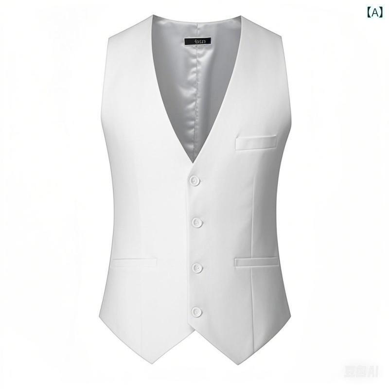 ベスト 男性用 スリムフィット チョッキ フォーマル 紳士服 ポリエステル 無地 ホワイト ベージュ グレー ブラック ワインレッド スカイブルー ネイビー