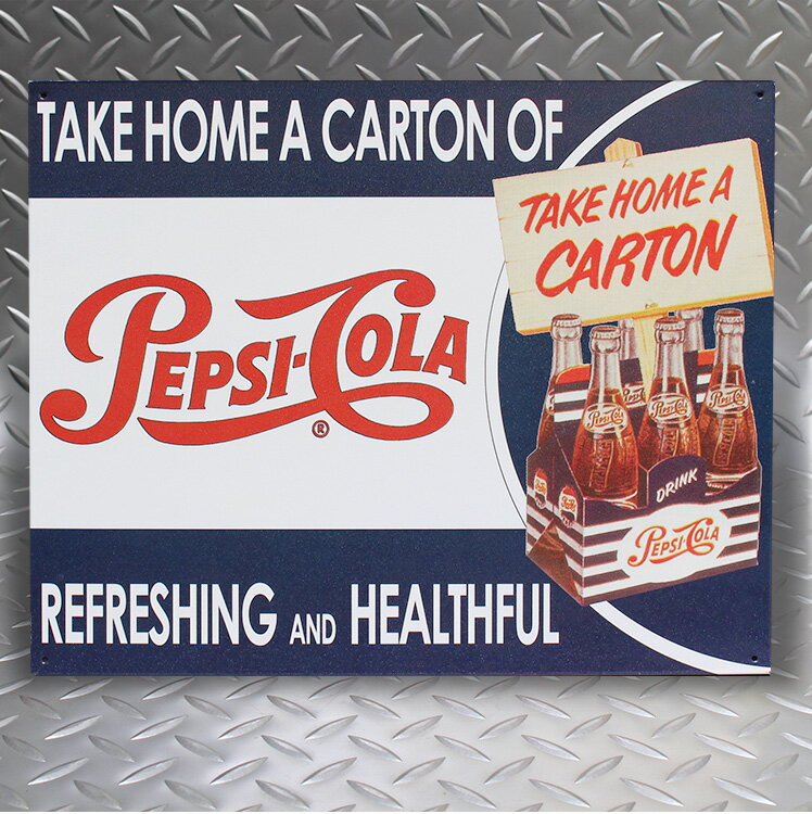 ブリキ 看板 ティンプレート PEPSI COLA TAKE HOME A CARTON H30.5×W38cm ブリキ製 オシャレ 壁面 インテリア小物 アメリカン雑貨