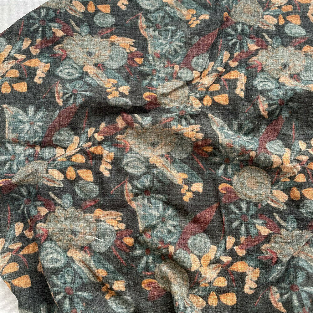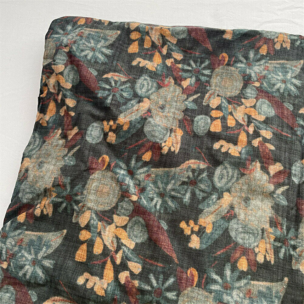 送料無料 135cm幅 90cm単位 生地 布 布地 きじ ぬの 手作り生地 裁縫 DIY用生地 手芸用 ハンドメイド向け プリント 花柄 森系 緑 黒 竹節綿 スラブコットン ダークトーン 濃色地 手描き風フラワー
