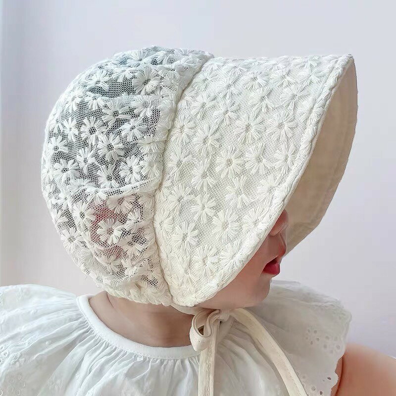 送料無料 ベビー帽子 新生児 帽子 レース デイジー図案 刺繍 ボンネット つば広い 春 韓国風 ひも付き かわいい 通気性良い 赤ちゃん ベビー 可愛い おしゃれ 女の子 出産準備 出産祝い 楽天海外通販