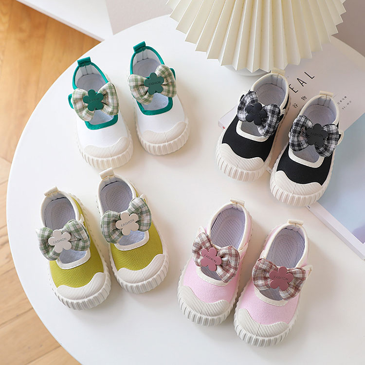 送料無料 子供靴 女の子 上履き リボン付き マジックテープ付き キャンバスシューズ フラットシューズ かわいい ガールズ カジュアル 楽ちん キッズシューズ 女児 通園 通学13.5 14 15 16 17 18 19cm ピンク イエロー ブラック グリーン
