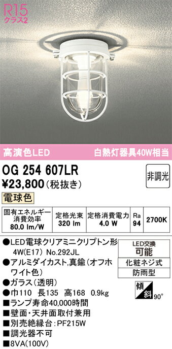 βオーデリック/ODELIC 【OG254607LR】ブラケットライト 高演色LED 電球色 非調光 LEDランプ 化粧ネジ式 防雨型