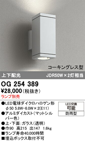 βオーデリック/ODELIC【OG254389】エクステリア ポーチライト LEDランプ ランプ別売 上下配光