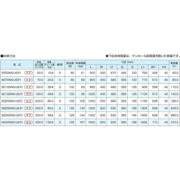 ●下田エコテック 【SE300NS-UE(F)(ステンレス製蓋付)】耐火型グリーストラップ NS式 UE(F)型 許容流入流量300(L/min) 受注約2週〔IE〕