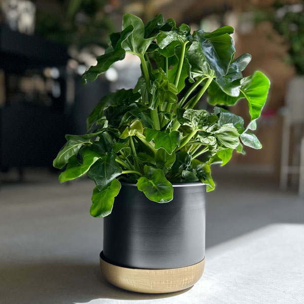 ゴールドのソーサーがアクセントのシンプルなフォルムの鉢カバー。 シックなカラーでグリーンがよく映えます。 鉢カバーだけでなく、小物入れとしても。 ポットとソーサーが取り外し可能なので別々でもお使いいただけます。 サイズは3種類ございます。 ・Φ12 ・Φ16 ・Φ21 サイズΦ16×H16cm、(内径)Φ15cm ソーサーサイズΦ16×H4.5cm 素材鉄 カラーブラック×ゴールド(艶なし)/ホワイト×ゴールド(艶あり) 原産国インド 鉢底穴なし ご注意 ・ブラックのポットはマット仕上げ(艶なし)、ホワイトのポットは艶あり加工がされています。ソーサーはどちらも同じです。 ・ポット・ソーサー共に、商品を塗装する際にフック掛けをして塗装を行われた為小さな穴がございます。予めご了承ください。詳しくは商品画像をご覧ください。 ・植物、アクセサリー等は商品に含まれておりません。 ・商品シールを直接商品に貼っておりますので、シールを剥がす際に塗装が剥がれる可能性がございます。お取り扱いにはご注意ください。 ■取扱時の注意、返品・交換について ※鉢・ポットなど商品シールを直接商品に貼っておりますので、シールを剥がす際に塗装が剥がれる可能性がございます。お取り扱いにはご注意ください。 ※ハンドメイド商品、輸入雑貨品、およびアンティーク調仕上品については、その味わいや風合いを楽しむ商品特性上、若干のキズや汚れなども商品の製造工程および品質上の「仕様」と考えられます。 当店の商品はメーカーの検品をクリアしたA級品のため、返品・交換はできかねますのでご了承ください。 ※ハンドメイド商品の現品サイズはその製造工程によりご購入時の商品ページに記載のサイズ表記と若干の誤差が生じる場合があります。 ※ご使用に支障をきたさない「傾き」「歪み」「ひび」「欠け」「割れ」「使用感」「色誤差」「風合い」「イメージ相違」等がある場合があります。 ※ガラス製品に気泡が見られることがございます。特に海外輸入製品などは昔ながらの手法で作られているものも多く、このような現象が起こることがあります。 これは商品の製造工程および品質上の「仕様」であり「傷・破損」ではありません。モダンな空間やエキゾチックな空間にも使えるオリジナルセレクトアイテム。 シンプルなフォルムや、重厚感漂う仕上がりは、馴染みがよく印象的なコーディネートが完成します。 ゴールドのソーサーが目を引くバイカラーの鉢カバー。 ポット(穴なし)とソーサーのセットです。お手持ちの植物をインナーポットごといれてお使いください。 ポットの内径は15cm。3号〜4号の鉢がおすすめです。 グリーンがよく映えるシックなカラー 使用植物:フィロデンドロンセロームスーパーアトム4号(ホワイト、ゴールドともに) ブラックのポットはマット仕上げ。ホワイトのポットは艶あり加工がされています。※ソーサーはどちらも同じです ポットとソーサーは取り外し可能で別々にもお使いいただけます。 サイズはФ12、Ф16、Ф21の3種類です。
