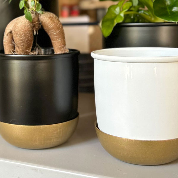 CLOVER(クローバー) ポットウィズソーサー Φ16 ブラック×ゴールド/ホワイト×ゴールド 5号 鉢カバー 植木鉢 受け皿 ソーサー付き 室内 プランター 植物 観葉植物 鉢ポット 鉢プランター ゴールド 光沢 黒 白 スタイリッシュ モダン