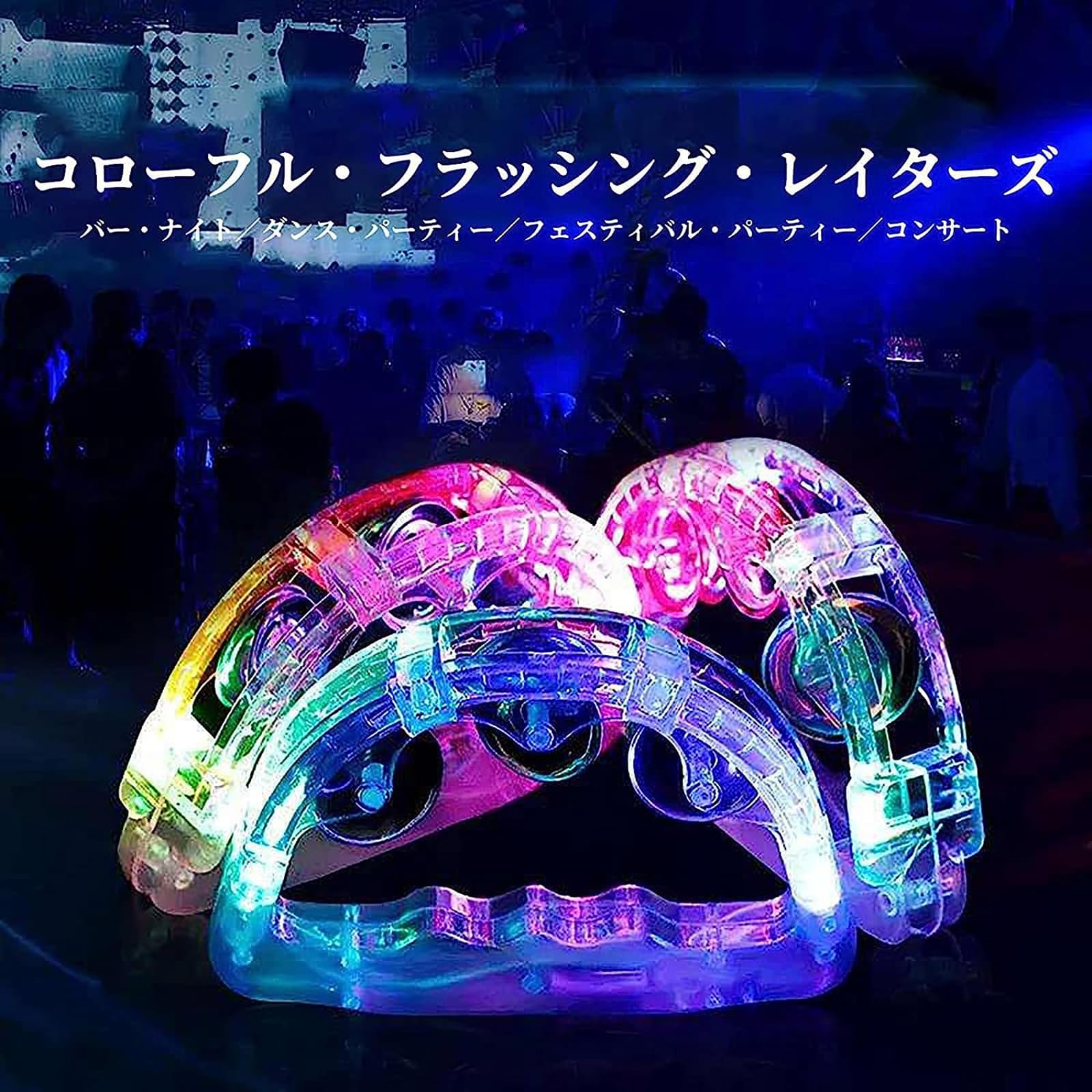 商品情報商品の説明主な仕様 【光るタンバリン】光る、LEDタンバリン2個セットです。耐用性に良いプラスチック、品質の澄んだ音;スイッチを入れるとインボーカラーに光る仕様で、その華やかさで注目を集めます!br【光り方は3パターンあり】シーンによって楽しめます。カラオケやパーティーなどの盛り上げグッズとして大活躍!高速点滅、低速点滅、ランダム点滅の3パターンを切り替えて楽しめます。br【使い方は簡単なので】お子様もご利用頂けます。リズムに合わせてタンバリンを振る事で、楽しみながら音感を育てる事ができますね。クリスマスやお誕生日プレゼントとしても喜ばれます。br【人間工学のグリップ幅】クリアデザインでオシャレ、人間工学のグリップ幅、光るタンバリンは、子供会のお遊戯発表会などのダンスに使うと舞台が華やかになります。プラスチック製なので軽く、お子さまでも楽に振ることができます。br【アクティブな雰囲気】クリスマスや忘年会、新年会などの余興に小道具としてぺアで使えます。一人ではちょっと恥ずかしいけど二人なら大丈夫。アップテンポの曲に使えばみんなのテンションも上がります。