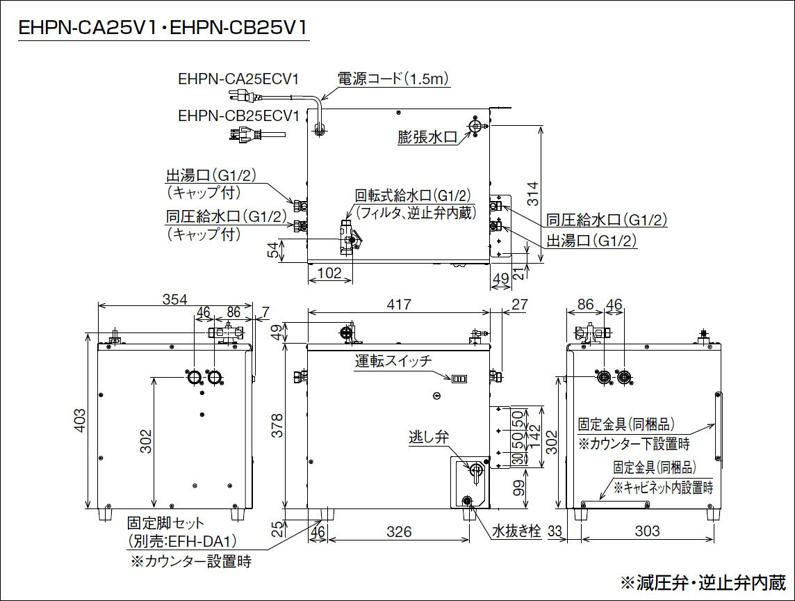 INAX LIXIL 電気温水器 EHPN-CA25V1 ゆプラス 出湯温度可変25L (洗面用) 100Vタイプ パブリック向け【純正品】