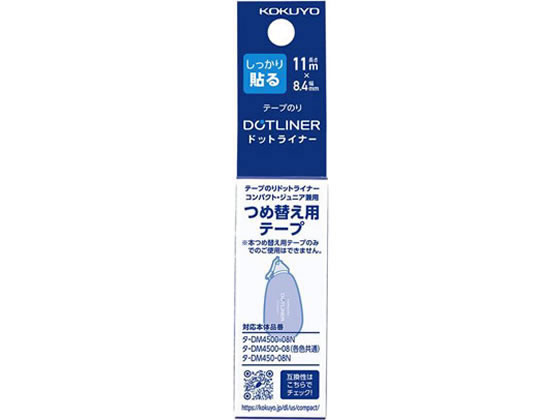 【仕様】コンパクトなのに、たっぷり使える11m巻き。つめ替えの手間も減ります。持ち運び時もじゃまになりません。ポップアップ式でつめ替えが簡単。●仕様:詰め替え用●強粘着●テープ寸法:幅8.4mm×長さ11m●対応本体品番:タ−DM4500−08・タ−DM4500−08N・タ−DM450−08・タ−DM450−08N●材質:つめ替えケース/R−ABS●ACID FREE●注文単位:1箱(10個)●GPNエコ商品ねっと掲載※のり面は薄い青色です。【備考】※メーカーの都合により、パッケージ・仕様等は予告なく変更になる場合がございます。【検索用キーワード】こくよ KOKUYO どっとらいなーこんぱくと DOTLINER COMPACT 文房具 テープノリ テープ糊 てーぷのり てーぷ糊 幅8.4mm×長さ11m 1箱 1パック 10個セット つめかえ用 ツメカエ用 詰替え用 詰換え用 詰め替え用 詰め換え用 レフィル リフィル ドットライナージュニア テープのり交換用カートリッジ コクヨドットライナー DLジュニア タ−D4500−08 タD450008 タ−D4500−08N タD450008N タ−DM4500−08 タ−DM4500−08N タ−DM450−08 タ−DM450−08N タDM450008 タDM450008N タDM45008 タDM45008N RPUP_05 R35058小さいけれどつめ替え可能!しっかり貼るタイプ