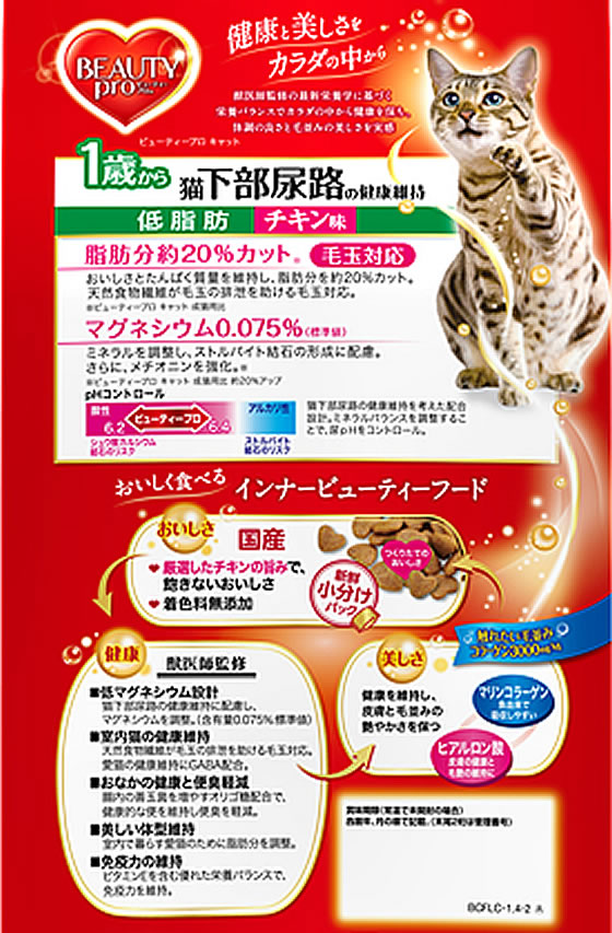 【レビュー投稿で100円OFFクーポン】【お取り寄せ】日本ペットフード ビューティープロ猫低脂肪1歳チキン味1.4kg ドライフード 猫 ペット キャットフード