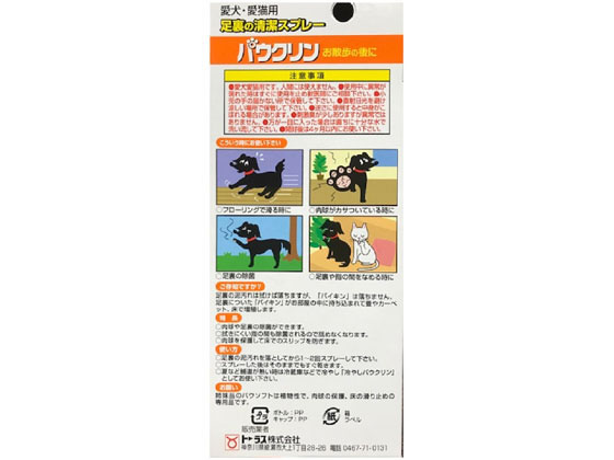 【商品説明】お散歩後の新習慣!足裏についたバイ菌を隅々まで除菌します。舐めても安心安全。スプレータイプなので雑菌が残りがちな肉球パットの隙間や爪の生え際にも届いて菌の繁殖を防ぎます。ビタミンE配合で肉球を若返らせ、本来の肉球の機能を十分に発揮させます。パットのがさつき、ひび割れにも効果的。【仕様】●サイズ:75×43×185mm●容量:100ml ●重量:145g【検索用キーワード】トーラス とーらす パウクリン100ml ぱうくりん100ml 除菌スプレー スプレー 消臭スプレー 100ml 100 犬猫共用 イヌネコ用 犬猫用 犬用 イヌ用 いぬ用 ネコ用 ねこ用 ドッグ用 キャット用 犬猫専用 ペット用 全犬種 犬 いぬ イヌ ペット ケア用品 犬(ドッグ)用 RPUP_02 R74786除菌と保護、滑り止めが一度にできる