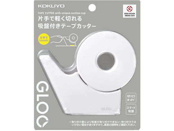 【商品説明】平らな水平面に吸盤で固定、片手で使えます。特殊な吸盤で、軽い力で取り外しすることができます。特殊加工刃を採用。軽い力でよく切れ、のりがたまりにくく切り心地が長持ち。切り口はギザギザにならずまっすぐキレイ。小巻きテープ専用のミニサイズ。【仕様】●製品色:白●外寸法:幅38×奥行105×高さ89mm●質量:78g●対応テープ:小巻きテープ(幅18mmまで・外径φ52mmまで)●材質:本体・カバー/R−ABS、刃/ステンレス、吸盤/シリコン●吸盤を取り付けられるところ:平らな水平面(※凹凸のある面・ザラザラな面など、取り付け面により吸盤が取り付けできない・取り付けてはいけない場合があります。)●注文単位:1個●グリーン購入法適合※テープは付属しておりません。※刃は交換できません。※名入れテープの一部やビニルテープなどテープの種類や材質によっては、切れなかったり短期間で切れ味が低下することがあります。【備考】※メーカーの都合により、パッケージ・仕様等は予告なく変更になる場合がございます。【検索用キーワード】KOKUYO こくよ コクヨ ぐるーてーぷかったー グルーテープカッター GLOO テープカッター 小巻テープ用カッター テープ台 幅38mm 長さ105mm 1個 白 ホワイト T−GM510W TGM510W 吸盤付き ミニサイズ 直線カット 軽い力 まっすぐ 切る、貼る、留める用品 接着テープ RPUP_03 sch_cr05 RF1017テープカッターのミニサイズ。スマート吸盤で固定する、片手で使えるテープカッター