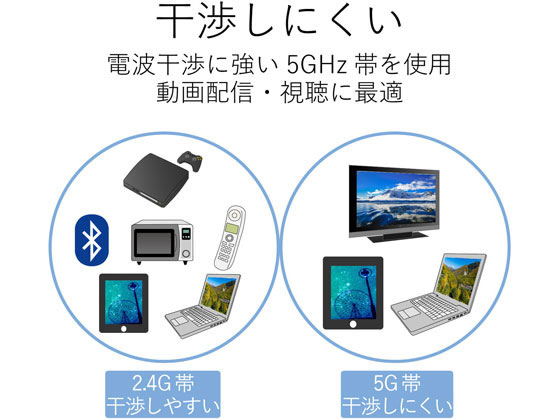 【商品説明】5GHz通信で電波干渉に強く、11acにより最大433Mbpsの超高速通信に対応しているため、手軽にパソコンをグレードアップすることが可能です。 ※11n/g/b (2.4GHz)通信には対応しません。11ac/n/a (5GHz)対応の無線LANルーターと組【仕様】●無線LAN規格:IEEE802.11ac(5GHz帯)/IEEE802.11n(5GHz帯)/IEEE802.11a(5GHz帯)●インターフェイス:USB2.0●周波数(中心周波数):5.2GHz帯/5.15〜5.25GHz、5.3GHz帯/5.25〜5.35GHz、5.6GHz帯/5.47〜5.725GHz●チャンネル:5GHz帯(W52/W53/W56)/36/40/44/48/52/56/60/64/100/104/108/112/116/120/124/128/132/136/140ch●伝送方式:IEEE802.11ac/OFDM/IEEE802.11n/OFDM/IEEE802.11a/OFDM●伝送速度(理論値):最大433Mbps●送信出力:10mW/MHz以下●セキュリティ:WPA2-PSK(AES/128bit)、WPA-PSK(TKIP)、WEP(128/64bit)●アクセス方式:インストラクチャー/アドホック 1/ソフトウェアAP 2 1 Mac OS、Windows 10/8.1/8はアドホックモードに対応していません。※2 Mac OS、Windows 10S/10/7/VistaはソフトウェアAPモード(親機)に対応していません。●設定方式:WPS(ソフト方式)●環境条件:温度/0〜40℃、湿度/20〜80%(結露なきこと)●消費電流(最大):176mA●外形寸法(幅×奥行き×高さ):(W)約19×(D)約15×(H)約8mm●質量:約2g●筐体材質(カラー):プラスチック(ホワイト)●各種取得規格:VCCI ClassB、TELEC●保証期間:1年●付属品:かんたんセットアップガイド、CD-ROM●対応OS:Windows 10S(32/64bit)/10(32/64bit)/8.1(32/64bit)/8(32/64bit)/7 SP1以降(32/64bit)/Vista SP2以降(32bit)/XP SP3以降、Mac OS X 10.10/10.9/10.8/10.7/10.6 Windows 10Sはドライバレス対応【備考】※メーカーの都合により、パッケージ・仕様等は予告なく変更になる場合がございます。【検索用キーワード】エレコム ELECOM えれこむ 無線LANアダプタ 無線LAN 無線 LAN アダプタ 433Mbps 11ac ホワイト PC周辺機器 ネットワーク機器 RH5673世界最小クラス11ac/n/a(5GHz)専用USB2.0対応無線子機
