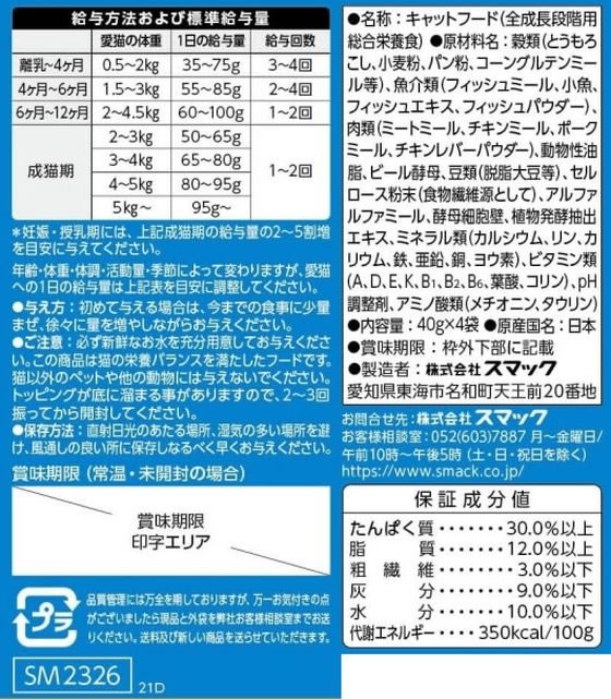 【レビュー投稿で100円OFFクーポン】【お取り寄せ】スマック ミネット 食べ比べ まぐろチップ&小魚添え 40g×4連 ドライフード 猫 ペット キャットフード
