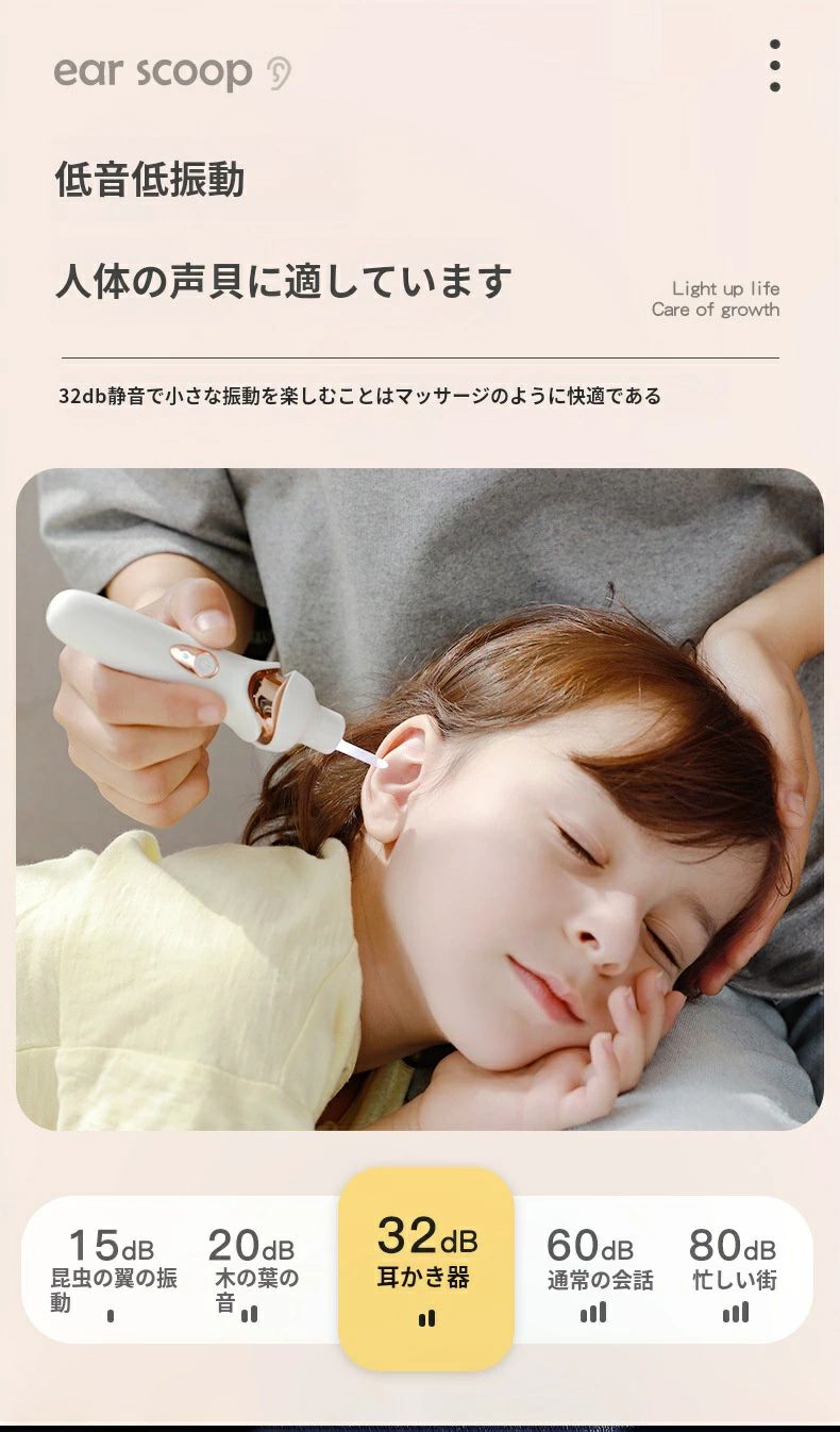 【材質】ABS 【サイズ】17.5CMx2CM 【電池容量】200MAH 【静音設計】 低騒音設計なので、静かで作業します。 【耳吸引】 「吸引」で耳垢をゴッソリ取り除く! ヘッドは弾性素材なので、耳がもやさしい! 【ライト付き耳かきで、清潔、安心、安全】 *耳の中が良く見えるから、とにかく取れる! *耳の中を擦らないから痛めません *安心、安全、清潔、気持ちいい?コスパ抜群! *LEDライトで耳の穴を照らし、耳の奥までしっかりと見ながら耳垢を除去できます。細かい作業がしやすく、無駄な刺激を与えずに耳掃除が行えます。
