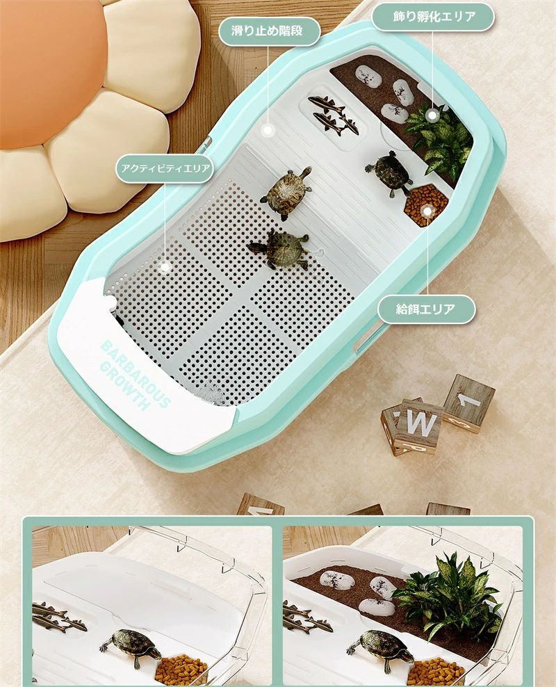 カメ 水槽 亀 タンク 亀水槽 脱走防止 飼育ボックス 多頭飼い 爬虫類 飼育ケース 両生類用 ボックス カメ生息地 飼育容器 亀の楽園 水族館 水替え簡単