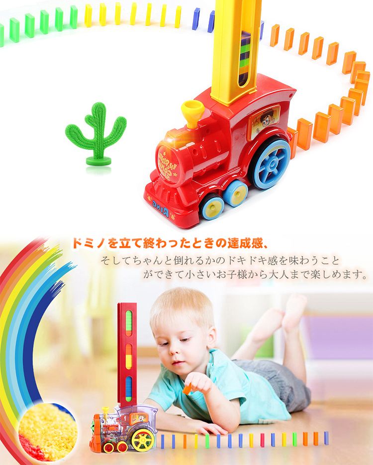 <特徴>【面白い遊び方】ドミノをカードクリップに入れて、電車に乗せたら、それは周りに行くことができます(単三電池2本が必要、別売り)。エンジンの煙突は、左右の方向を調整することができます。それが周りを回り、自動的にドミノを出したときには明るくなるでしょう。音楽の音でも楽しみます。【知力を高めるドミノ積み木】ドミノは子供たちの空間的な思考力を刺激し、色の識別を高め、子供の遊びの時間をもっと面白くさせることができます。子供の注意力を育成し、注意を集中させる。また、簡単、自然、ファッション、これは子供と大人が楽しめるドミノ遊びで、親子活動に最適です。【100枚のカラフルブロック付き】100枚のカラフルなプラスチック製のブロックで、子どもの望むドミノレーストラックを作りましょう。大人も子供もとても楽しいです!それらを一列に並べてセットしてから、押して、ドミノがチェーンのように転がってレースのように転がります。【広い用途】児童館・保育園・幼稚園の立体遊び教具としてもオススメです。高級感あるかわいいパッケージに入っているので、子供は遊びながら、贈り物、出産祝い、子どもへのお誕生日、入園祝いなどのプレゼントに喜ばれるおすすめアイテムです。<仕樣>タイプ:透明カー、レッドカー、蜂のカー、牛のカー対象年齢:3歳〜電源:単3電池×2本使用(別売)ケースサイズ:横34cm×縦8cm×高さ25cm素材:プラスチックセット内容:(透明カーとレッドカー)ドミノ*100、カードクリップ*1、サボテン*1、電車おもちゃ*1(蜂のカー)ドミノ*100、カードクリップ*1、部品*6、電車おもちゃ*1(牛のカー)ドミノ*100、カードクリップ*1、部品*5、電車おもちゃ*1<ご注意>※小さな部品。3歳未満の子供向けではありません。※画像はご覧になっているパソコン/モニター等により実際の商品と多少色味が異なる場合がございますので、ご了承ください。※上記の数値は、実測によるものです。多少の誤差はご容赦ください。※ご注文が集中した場合、倉庫の混雑等により、発送が遅れる場合がございます。※商品に関して問題が生じた場合には、お気軽にご連絡ください。 Information 商品情報 商品説明 <特徴>【面白い遊び方】ドミノをカードクリップに入れて、電車に乗せたら、それは周りに行くことができます(単三電池2本が必要、別売り)。エンジンの煙突は、左右の方向を調整することができます。それが周りを回り、自動的にドミノを出したときには明るくなるでしょう。音楽の音でも楽しみます。【知力を高めるドミノ積み木】ドミノは子供たちの空間的な思考力を刺激し、色の識別を高め、子供の遊びの時間をもっと面白くさせることができます。子供の注意力を育成し、注意を集中させる。また、簡単、自然、ファッション、これは子供と大人が楽しめるドミノ遊びで、親子活動に最適です。【100枚のカラフルブロック付き】100枚のカラフルなプラスチック製のブロックで、子どもの望むドミノレーストラックを作りましょう。大人も子供もとても楽しいです!それらを一列に並べてセットしてから、押して、ドミノがチェーンのように転がってレースのように転がります。【広い用途】児童館・保育園・幼稚園の立体遊び教具としてもオススメです。高級感あるかわいいパッケージに入っているので、子供は遊びながら、贈り物、出産祝い、子どもへのお誕生日、入園祝いなどのプレゼントに喜ばれるおすすめアイテムです。<仕樣>タイプ:透明カー、レッドカー、蜂のカー、牛のカー対象年齢:3歳〜電源:単3電池×2本使用(別売)ケースサイズ:横34cm×縦8cm×高さ25cm素材:プラスチックセット内容:(透明カーとレッドカー)ドミノ*100、カードクリップ*1、サボテン*1、電車おもちゃ*1(蜂のカー)ドミノ*100、カードクリップ*1、部品*6、電車おもちゃ*1(牛のカー)ドミノ*100、カードクリップ*1、部品*5、電車おもちゃ*1<ご注意>※小さな部品。3歳未満の子供向けではありません。※画像はご覧になっているパソコン/モニター等により実際の商品と多少色味が異なる場合がございますので、ご了承ください。※上記の数値は、実測によるものです。多少の誤差はご容赦ください。※ご注文が集中した場合、倉庫の混雑等により、発送が遅れる場合がございます。※商品に関して問題が生じた場合には、お気軽にご連絡ください。配送方法 佐川急便
