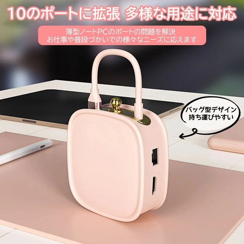 商品特徴 ■10in1 USB C ハブ】 10ポートが揃っているUSB Cハブです。USB3.0ポートx1、USB2.0ポートx3、HDMI出力ポートx1、USB-C PD充電ポートx1、USB-C USB-C Date2.0ポートx1、SDカードリーダーx1、TFカードリーダーx1、RJ45 LANコネクタx1、を搭載しております。1台で様々なニーズを満たせられ、利便性が高く、汎用性に優れます。また、コンパクトで持ち運びも簡単です。 ■SD ・TFカードリーダー】 デジタルカメラなどで撮影した写真や映像を読み込むことができ、高解像度データの伝送もストレスフリーにできます。大容量のHD映画やビデオ、旅行写真等をわずか数秒で伝送完了できます。スムーズな高速伝送で時間を節約できます。 ■PD充電対応】 Power Delivery対応したUSB-Cポート経由で、安定した接続を保証しながらもMacBookなどのPD対応できるパソコンに急速充電ができます。 ■4K*2K(3840*2160) HDMI 高画質映画】 汎用性の高いHDMI接続なので、4K解像度に対応できるテレビやパソコンに接続できます。一眼レフなどで撮影した高精細の写真も、そのままの解像度で細部まで見ることが可能です。4K高解像度ならではの臨場感でお楽しみいただけます。 商品仕様】 製品名:10-in-1 USB-C PD ハブ データ転送用USB-A 3.0ポート:最大5Gbpsの高速データ転送可能 データ転送用USB-A 2.0ポート:最大480Mbpsのデータ転送可能 HDMI出力ポート:最大4K (30Hz)に 対応 PD対応USB-C充電ポート:最大入力100Wに対応