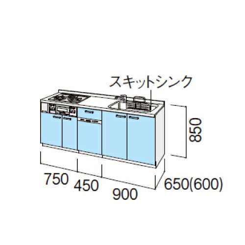 【最大5000円OFFクーポン配布中】システムキッチン シエラS リクシル 下台のみ 食洗機付 間口210cm W2100mm 壁付I型 奥行65cm 開き扉プラン 扉グループ2 メーカー直送