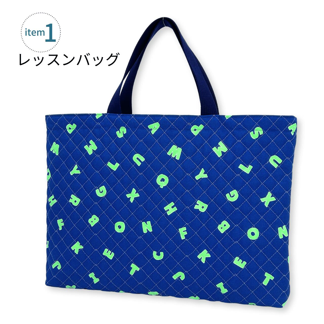 入園 入学 5点セット アルファベット ネイビー キルティング レッスンバッグ 上履き入れ 巾着 大小 お弁当 日本製 コットン男の子 送料無料 トレンドポート
