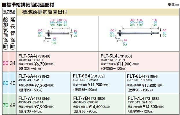 長府/サンポット 石油暖房機 関連部材 FLT-7B4 標準給排気筒直出付 ♪