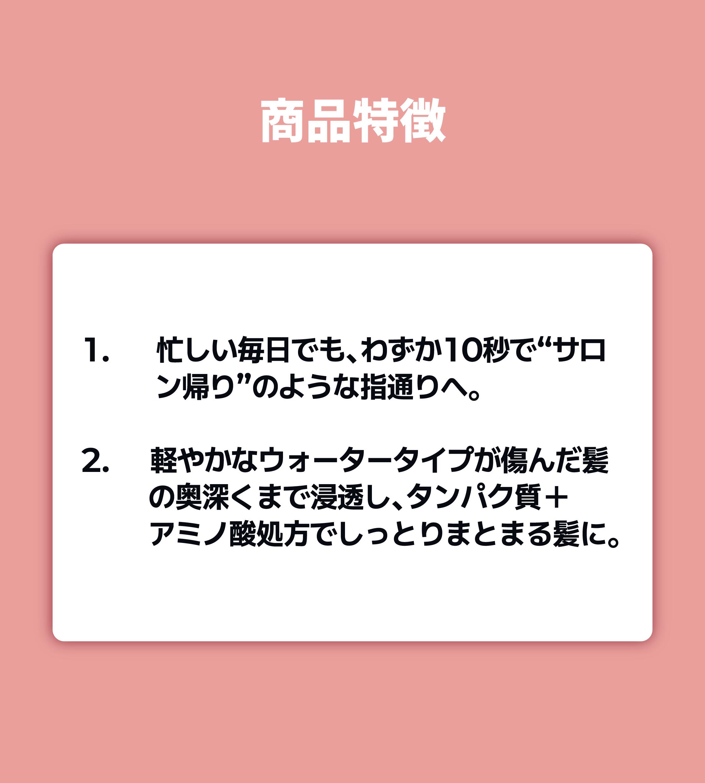 商品詳細 広告文責 WH&B / +82-10-9425-7098 メーカー名 モレモ 輸入者名 本商品は個人輸入商品のため、購入者の方が輸入者となります。 製造国 韓国 商品区分 化粧品 全成分 ブチレングリコール、変性アルコール、プロピレングリコール、精製水、グリセリン、ミリスチルアルコール、香料、ステアルトリモニウムクロリド、セトリモニウムクロリド、ジカプリリルカーボネート、加水分解シルク、加水分解ケラチン、加水分解コラーゲン、ヒドロキシエチルウレア、オプンチアフィクスインジカ茎エキス、コロカシアエスクレンタ葉エキス、カウレルパレントリフォリアエキス、アデニウムオベスム葉エキス、スピルリナプラテンシスエキス、ポルフィラウンビリカリスエキス、ヒポファエラムノイデス果実エキス、加水分解トウモロコシタンパク、加水分解コムギタンパク、加水分解ダイズタンパク、グリシン、グルタミン酸、セリン、アスパラギン酸、ロイシン、アラニン、リシン、アルギニン、チロシン、フェニルアラニン、トレオニン、プロリン、バリン、イソロイシン、ヒスチジン、メチオニン、システイン、1,2-ヘキサンジオール、トコフェロール、タラガム、安息香酸ナトリウム、ソルビン酸カリウム 内容量 480ml 注意事項 ・当店でご購入された商品は、原則として、「個人輸入」としての取り扱いになり、全て韓国からお客様のもとへ直送されます。 ・個人輸入される商品は、全てご注文者自身の「個人使用・個人消費」が前提となりますので、ご注文された商品を第三者へ譲渡・転売することは法律で禁止されております。 ・通関時に関税・輸入消費税が課税される可能性があります。課税額はご注文時には確定しておらず、通関時に確定しますので、商品の受け取り時に着払いでお支払いください。 詳細はこちらご確認下さい。 *色がある場合、モニターの発色の具合によって実際のものと色が異なる場合がある。