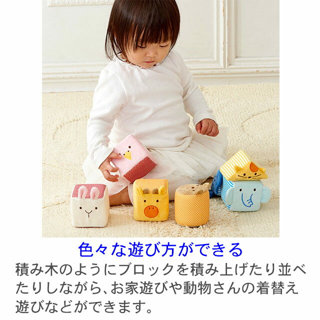 はじめてのおもちゃにぴったりなやわらか布製の積み木。ひとつひとつのつみきから音が鳴るので、ラトルとして単体で遊んだり、いないいないばあやごっこあそびをお楽しみいただけるのはもちろんのこと、ひっぱる、つかむ、にぎる、ころがす、などの動作を通じて様々な感覚を養うこともでき、安全かつ楽しみながら、赤ちゃんの成長を促します。 ■本商品はネームを貼付けられず名入れ非対応です。 ■材質:ポリエステルA ■構成:どうぶつブロック×7(うさぎ、ぞう、きりん、インコ、くま、ねずみ、ねこ) ■サイズ:【最小パーツ】ねこ・ねずみ:W10×D7×H5 cm 【最大パーツ】ぞう:W11.5×D7×H7 cm ■パッケージサイズ:W25×D20×H8 cm ■対象年齢目安:0.5歳〜 ■発売元:株式会社エド・インター(日本) ■生産国:中国 ■本製品はヨーロッパ玩具安全規格(EN71)適合品です。なめても安全な塗料が使われております。 お誕生日プレゼントや出産祝いギフト、クリスマスプレゼントなどにもお勧めです。|ふわふわアニマルブロック|赤ちゃんのおもちゃ やわらかい布製のつみきから音が鳴る♪ はじめてのおもちゃにぴったりなやわらか布製の積み木。ひとつひとつのつみきから音が鳴るので、ラトルとして単体で遊んだり、いないいないばあやごっこあそびをお楽しみいただけるのはもちろんのこと、ひっぱる、つかむ、にぎる、ころがす、などの動作を通じて様々な感覚を養うこともでき、安全かつ楽しみながら、赤ちゃんの成長を促します。 ■本商品は名入れ非対応です。 ■材質:ポリエステルA ■構成:どうぶつブロック×7(うさぎ、ぞう、きりん、インコ、くま、ねずみ、ねこ) ■サイズ:【最小パーツ】ねこ・ねずみ:W10×D7×H5 cm 【最大パーツ】ぞう:W11.5×D7×H7 cm ■パッケージサイズ:W25×D20×H8 cm ■対象年齢目安:0.5歳〜 ■発売元:株式会社エド・インター(日本) ■生産国:中国 本製品はヨーロッパ玩具安全規格(EN71)適合品です。なめても安全な塗料・染料が使われております。 色々な遊び方ができる 積み木のようにブロックを積み上げたり並べたりしながら、お家遊びや動物さんの着替え遊びなどができます。 ♪音を楽しむ♪ 振ったり押したりすると、つみきから音がしてラトルのように楽しむことができます。 かわいいパッケージ入り! プレゼントにも喜んでもらえる、かわいいパッケージに入っています。 製品仕様 ■商品名:ふわふわアニマルブロック ■本商品は名入れ非対応です。 ■材質:ポリエステルA ■構成:どうぶつブロック×7(うさぎ、ぞう、きりん、インコ、くま、ねずみ、ねこ) ■サイズ:【最小パーツ】ねこ・ねずみ:W10×D7×H5 cm 【最大パーツ】ぞう:W11.5×D7×H7 cm ■パッケージサイズ:W25×D20×H8 cm ■対象年齢目安:0.5歳〜 ■発売元:株式会社エド・インター(日本) ■生産国:中国 ■本製品はヨーロッパ玩具安全規格(EN71)適合品です。 なめても安全な塗料が使われております。 本製品はヨーロッパ玩具安全規格(EN71)適合品です。 CEマークは消費者には判断しにくい部分の危険を減らすこと、大人では注意できても子どもでは気付かない危険の発生を減らすことを目的に基準が定められています。 日本国内におもちゃを輸入する際には、食品衛生法によって製品に使われている塗料(着色料)の安全性を確認することが法律によって義務付けられています。 エド・インターの製品は幼児教室生まれの知育玩具です。 株式会社エド・インターは幼児教室の設立をきっかけに誕生しました。幼児教育の経験豊富な先生の生の声、お子さまの反応、保護者の方のご意見を活かして、本当に知育効果のあるもの、そして素材の温かみを大切にした木や布の知育玩具の開発に邁進しております。現在も兵庫県芦屋市・西宮市に教室があり、新商品の開発・改良に重要な役割を担っています。 これ以外の赤ちゃんのおもちゃはこちらへ