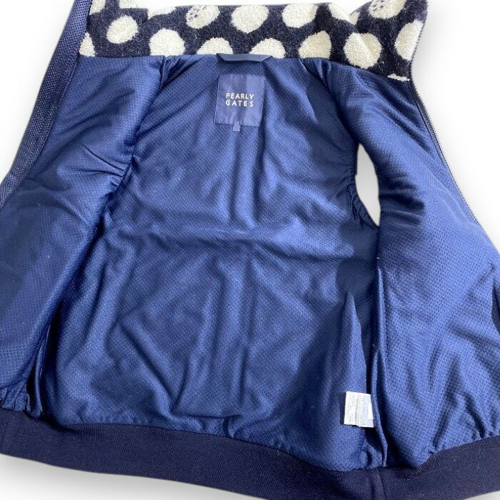 【中古】【新古品・未使用品】PEARLY GATES パーリーゲイツ ゴルフ 軽量保湿素材 THERMOLITE リングチェック BIGドット柄 総柄 ダブルジップ 中綿入り ベスト ゴルフウェア レディース 055-2258108 定価3.8万 ネイビーブラック オフホワイト 0-01 1-02 ▲042▼51021w04
