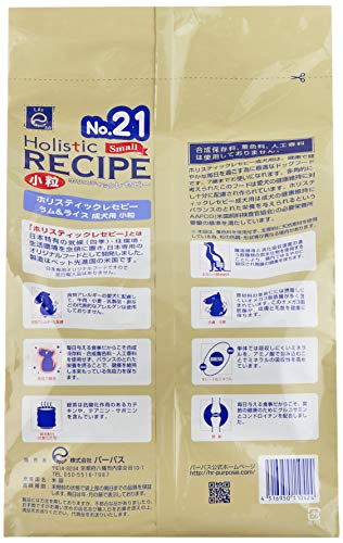 ・ 2.4キログラム (x 1) 4516950110424・・FlavorName:ライスSize:2.4キログラム (x 1)・本体サイズ (幅X奥行X高さ) :36×14.5×22cm・本体重量:2400g・原産国:アメリカ合衆国・栄養成分:たんぱく質:22%以上、脂質:12%以上、粗繊維:4.5%以下、粗灰分:8.5%以下、水分:10%以下、カルシウム:1%以上、リン:0.8%以上、オメガ3脂肪酸:0.25%、オメガ6脂肪酸:1.63%、エネルギー:340kcal/100g商品紹介 ホリスティックレセピー成犬用は、健康で健やかな毎日を過ごす為に最適なドックフードです。7歳までお使いになれます。 使用上の注意 開封後はしっかりと密封し、直射日光の当たらない湿気の少ない涼しい場所に保管して下さい。お子様の手の届かない所で保管して下さい。開封後は出来るだけ早くお使い下さい。ご体質に合わない場合は、使用を中止してください。 原材料・成分 ラム肉粉、醸造米、玄米、大麦、ラム肉、鶏脂、豆タンパク、ナチュラルフレーバー、ビートパルプ、トマト粗、醸造酵母、亜麻仁ミール、塩、緑茶、塩化カリウム、リン酸一水素カルシウム、塩化コリン、ユッカフォーム抽出物、アスコルビン酸、DL-メチオニン、L-リシン、ビタミン類(E、A、D3、B12、ナイアシン、B2、パントテン酸、B1、B6、葉酸、ビオチン)、ミネラル類(亜鉛、アミノ酸キレート化亜鉛、鉄、マンガン、アミノ酸キレート化マンガン、銅、アミノ酸キレート化銅、ヨウ素、セレン、コバルト)、酸化防止剤(ミックストコフェロール、クエン酸、ローズマリーエキス) 使用方法 犬種、性別、運動量、環境、季節などによって給与量が異なる。給与の回数は1日に1~3回にわけて与える。給与の際には新鮮な水を何時も飲めるようにして下さい。給与量の目安(体重~5kg/110g、5kg~10kg/100g~190g、10kg~25kg/170g~370g、25kg~50kg/340g~620g、50kg~/560g~) ご注意(免責)必ずお読みください 製造ロットによりパッケージが変更になる場合があります。