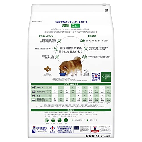 ・ 3キログラム (x 1) 2254・・Size:3キログラム (x 1)・健康的な体重減量に役立ちます。・健康的な脂肪代謝と筋肉量の維持に役立ちます。・満腹感が持続します。・健康をサポートし、免疫力を維持します。・高レベルのL-カルニチンを配合商品紹介 今やペットの約半数が肥満であると言われています。ほんの少し体重が増えるだけでも、ペットと家族が遊ぶ時間が減少してしまったり、関節への負担増などによって、生活の質(クオリティ・オブ・ライフ)が下がってしまうと言われています。そんなペットのために、ヒルズの栄養学者と獣医師が開発したのが、体重減量に特化した特別療法食 プリスクリプション・ダイエット 犬用 r/d アールディー 小粒です。この製品は、低脂肪と低カロリーで、8週間で健康的な減量に役立つことが科学的に証明されたフードです。 使用上の注意 この製品は食事療法食です。給与に関しては、必ず獣医師の指示に従ってください。 原材料・成分 トウモロコシ、トリ肉(チキン、ターキー)、コーングルテン、セルロース、エンドウマメ、ビートパルプ、チキンエキス、動物性油脂、ポークエキス、亜麻仁、米、小麦、ミネラル類(カルシウム、ナトリウム、カリウム、クロライド、銅、鉄、マンガン、セレン、亜鉛、ヨウ素)、乳酸、アミノ酸類(タウリン、トリプトファン、メチオニン、リジン)、ビタミン類(A、B1、B2、B6、B12、C、D3、E、ベータカロ テン、ナイアシン、パントテン酸、葉酸、ビオチン、コリン)、酸化防止剤(ミックストコフェロール、ローズマリー抽出物、緑茶抽出物)、カルニチン 安全警告 メーカーでのパッケージ切り替えに伴い、お手元に届く商品が画像と異なる場合がございます。予めご了承下さいますようお願い申し上げます。・ご注意(免責)必ずお読みください リニューアルによりパッケージや内容等が変更となり、お手元に届く商品が画像と異なる場合がございます。予めご了承下さい。