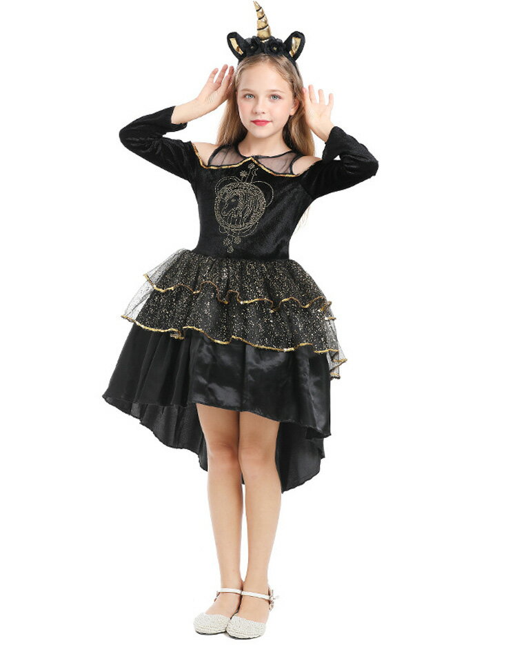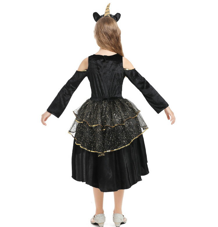 女の子 ハロウィーン衣装 子供 コスプレ 魔女 デビル 黒 ワンピース ユニコーン ハロウィーン スパンコール ハロウィン 仮装 小学生 可愛い ドレス 2点セット 子ども 魔女っ娘 帽子付き コスチューム 変装 パーティー ステージ 発表会 舞台劇 テーマパーク 魔法使い cosplay