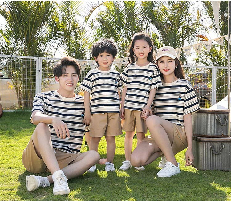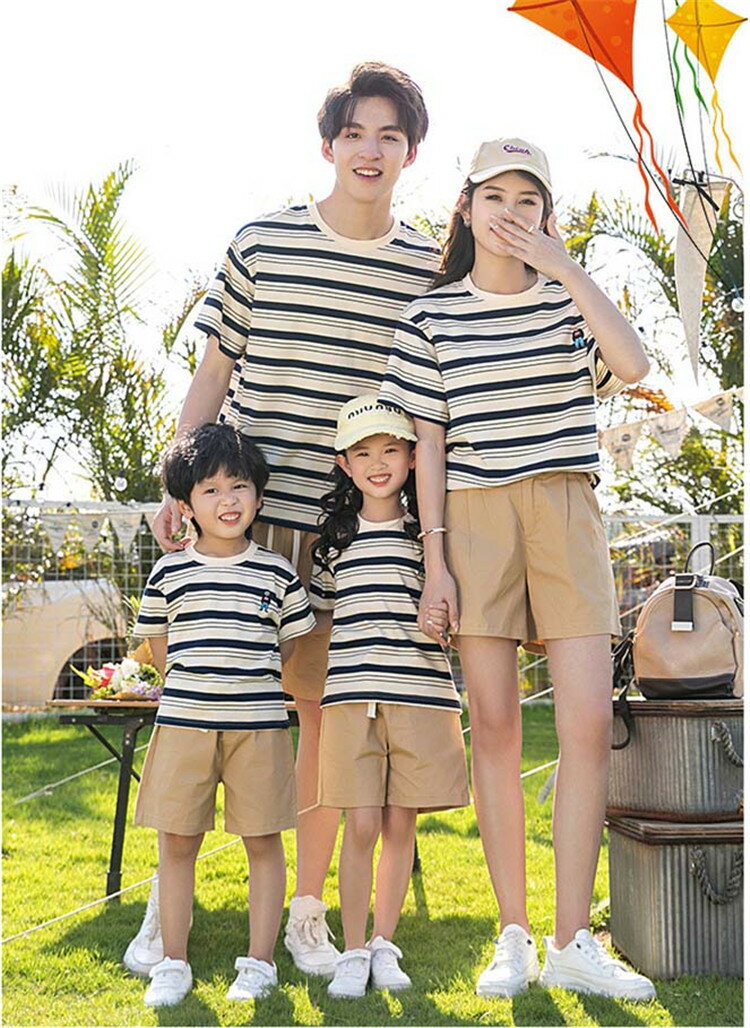 親子 ペアtシャツ 親子 ペアルック リンクコーデ 親子 セット 縞 家族 お揃い tシャツ ショートパンツ 親子コーデ 父 娘 母 息子 姉 弟 おそろい 親子 半袖 夏服 子供 パパ ママ 女の子 男の子 子供服 プレゼント 旅行 記念日 家族活動 運動会 出かけ着