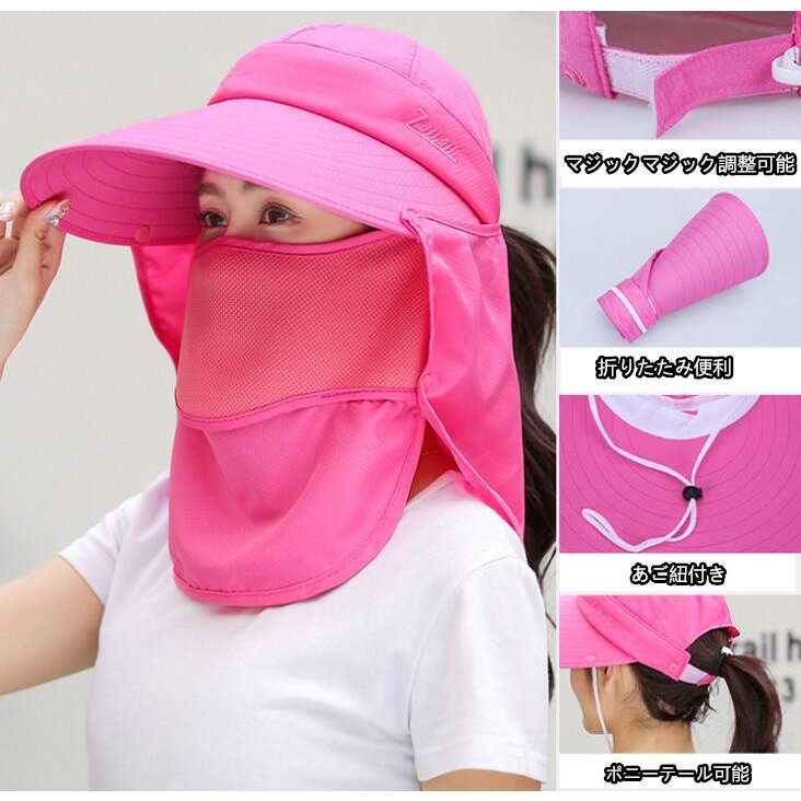 帽子 レディース つば広 UVカット 農作業 折りたたみ ガーデニング 帽子 360度 紫外線対策 着脱可能 屋外 ガーデニング 外仕事 マスク