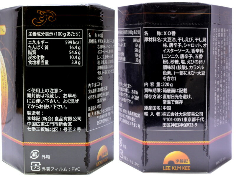 オイスターソースで有名な香港の調味料ブランド【李錦記】の「XO醤」は、厳選された干し貝柱、干しエビに各種スパイスを加えて作り上げた最高級調味料です。和・洋・中問わず利用でき、主に麺類・点心・おかゆ・パスタ料理などのトッピングや前菜・おつまみとして、また肉・魚・野菜・チャーハンなど炒め物に加えるとより一層贅沢な味わいに仕上がります。ご飯に乗せて食べても! 【商品詳細】 ・名称 XO醤 ・原材料 大豆油、干しエビ、干し貝柱、唐辛子、シャロツト、オイスターソース、香辛料(ニンニク、唐辛子、五香粉))砂糖、塩、えびの卵、調味料(核酸)、カラメル色素、(一部にえび、大豆を含む) ・内容量 220g ・原産国 中国 ・保存方法 直射日光を避け、常温で保存して下さい。李錦記 XO醤 220g言わずと知れた李錦記の高級調味料【XO醤】です オイスターソースで有名な香港の調味料ブランド【李錦記】の「XO醤」は、厳選された干し貝柱、干しエビに各種スパイスを加えて作り上げた最高級調味料です。和・洋・中問わず利用でき、主に麺類・点心・おかゆ・パスタ料理などのトッピングや前菜・おつまみとして、また肉・魚・野菜・チャーハンなど炒め物に加えるとより一層贅沢な味わいに仕上がります。ご飯に乗せて食べても!